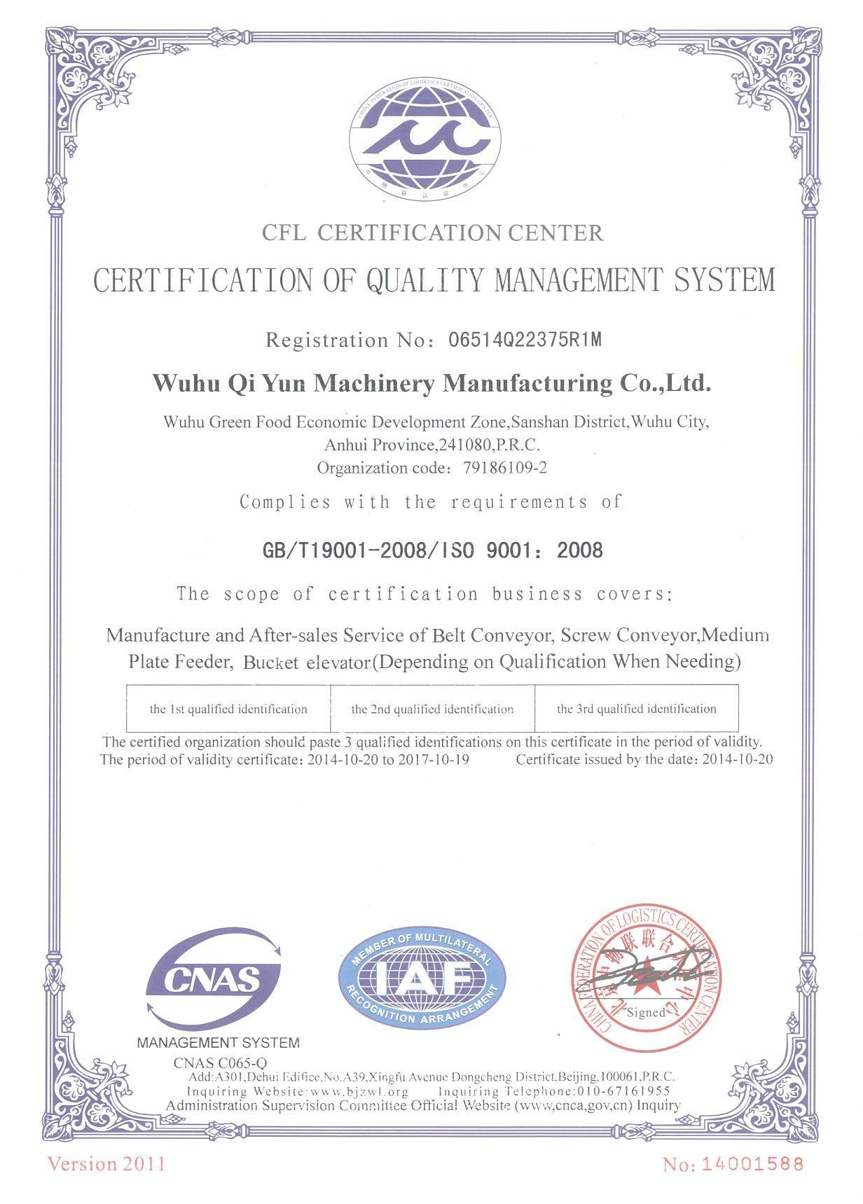 超越自己,才能贏得市場。“蕪起”不僅取得普通帶式輸送機的工業(yè)制造許可,正積極申領(lǐng)圓管帶式輸送機工業(yè)許可。。。。。